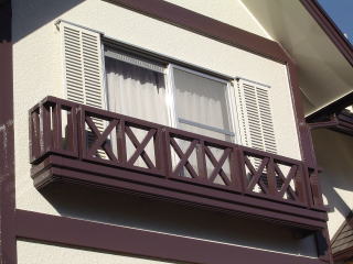 木部ボーダー(1階と2階を分ける部分)等に腐れを生じていましたので腐れ部分の撤去及び接木をおこない下地補修をおこない塗装させていただきました。木部は見た目ではわからない腐れが発生していることが多いですので専門家によく診断をしてもらい補修を行ったほうが良いと思われます。塗装をしたが木が腐っていたので数年後にはダメになってしまうようでは塗替えが本末転倒になってしまうおそれがあります。 |