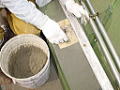 | 施工ポイント:当初手摺をケレン後、錆止めして処置する予定でしたが手摺の付根から水が漏れている形跡があり安全面の確保可能を確認の上、撤去しました。470mmの深さがありこれをモルタルできちんと処置し、塗膜で完全に防水することが重要です。 |