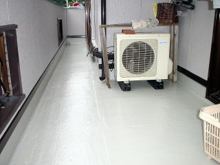1階部の外壁はタイル調外装板で色は無色透明の塗膜塗料(クリアー)を用いています。お客様の要望であえて新たな色をつけることをしませんでした。無色透明塗料を用いる場合のポイントは外装板自身があまりよごれていないこと、高圧水洗い時にあまり強く洗浄して外装板の色を剥がしてしまわないようにすることです。見た目にはあまり変化はしませんが住宅維持をする観点からは色をつける行為となんら変わりません。かえって趣きある風合い深い家にみえます。 |